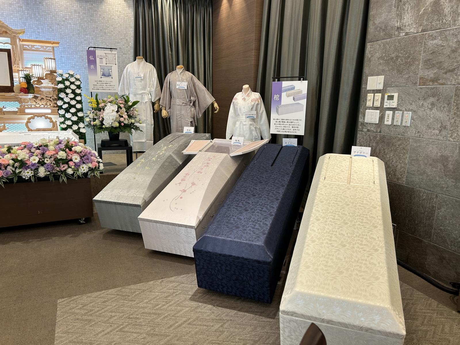 祭壇や棺、骨壺や仏衣などの展示会や